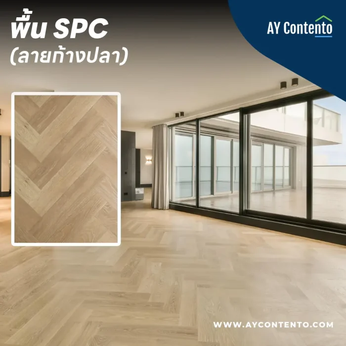 - ราคา: SPC ลายก้างปลามีราคาสูงกว่าพื้น SPC ลายไม้ หรือลายทั่วไป เนื่องจากรูปแบบการปูที่ซับซ้อนกว่าและสิ้นเปลืองวัสดุมากกว่า
